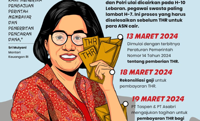 Menteri Keuangan, Sri Mulyani Indrawati, menyampaikan bahwa persiapan THR telah mendekati tahap final dan akan diumumkan oleh Presiden.